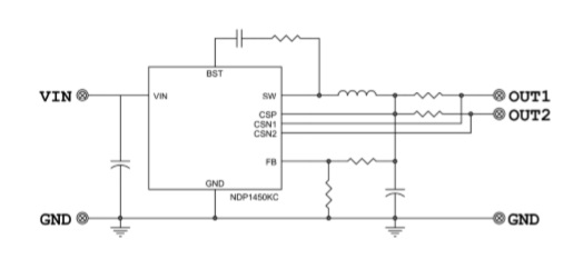 NDP2450KC支持5.5V至40V的極寬輸入電壓范圍,輸出電壓從1V至25V可調(diào)。能夠為負(fù)載持續(xù)提供高達(dá)5A的輸出電流。 |