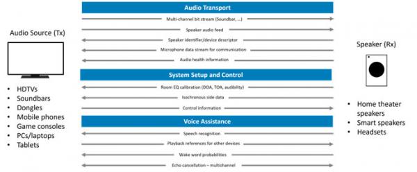 WiSA的傳輸層技術(shù)可管理音頻流、控制數(shù)據(jù)、系統(tǒng)設(shè)置和語音輔助