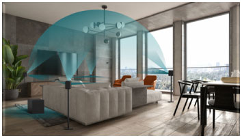 利用智能中心揚聲器通過ARC/eARC連接到高清電視,用無線方式連接2個前置揚聲器,2個后置揚聲器和一個低音炮,以實現(xiàn)一個完整的5.1沉浸式系統(tǒng)。