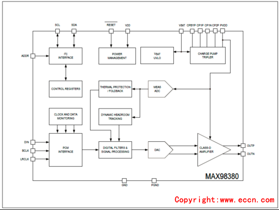 圖2. MAX98380詳細(xì)框圖