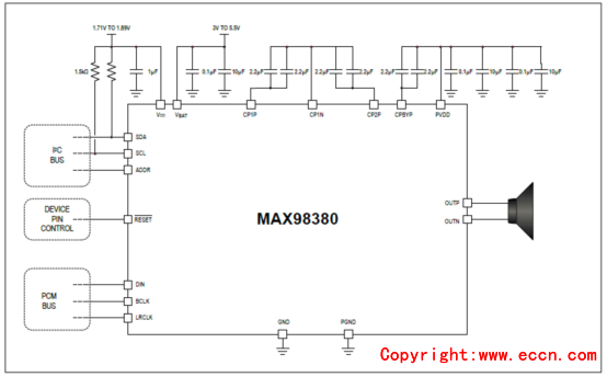 圖3. MAX98380典型應(yīng)用電路圖