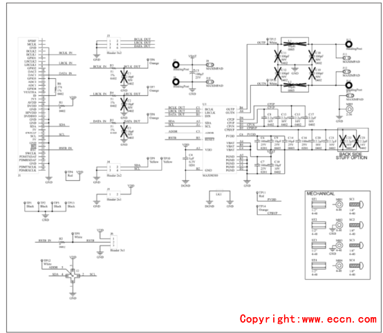 圖5. 評(píng)估系統(tǒng)MAX98380 EVS電路圖