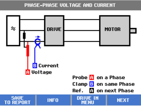 要使用 Fluke Motor Drive Analyzer 開始每個測試,只需根據(jù)圖表連接測試探針,然后按“下一步”。