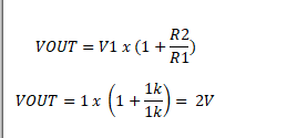 因此,一旦運算放大器“上電”,運算放大器的內(nèi)部參數(shù)就會工作以使反相輸入電壓等于 1V,并且按照規(guī)則,沒有電流流過反相引腳。由于 R1 和 R2 成為以 VOUT 作為源電壓的分壓器,分壓器輸出應(yīng)等于同相輸入電壓。