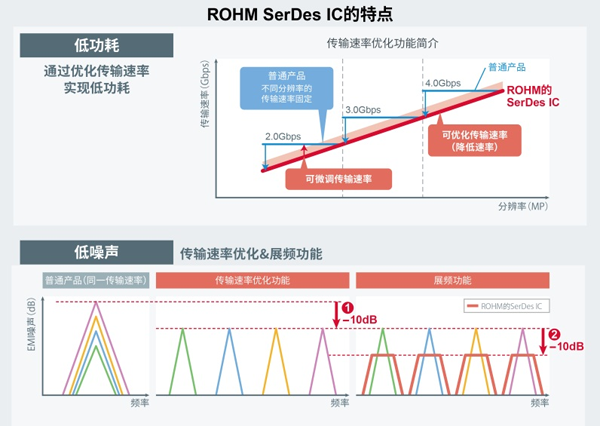 ROHM的SerDes IC的基本特點(diǎn)是低功耗且低噪聲。從2021年6月起,ROHM已經(jīng)開(kāi)始量產(chǎn)具有這些特點(diǎn)的首批SerDes IC產(chǎn)品——車(chē)載攝像頭模塊用的SerDes IC“BU18xMxx-C”。