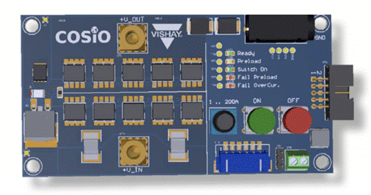為此,Vishay推出了一種自恢復(fù)電子保險絲參考設(shè)計(如圖1所示)。該方案可以在48V電壓下開關(guān)高達200A的負載,而整個方案都“濃縮”在一塊小型的雙面FR4印刷電路板上,且僅需被動冷卻即可。這個電子保險在安全可靠地實現(xiàn)開關(guān)操作的同時,還能夠提供必要的電路保護功能,且所有操作都是可恢復(fù)的,比傳統(tǒng)的機械繼電器具有更長的使用壽命。