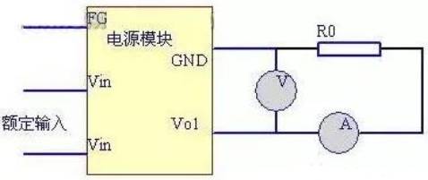 確定了額定負(fù)載以后,將開(kāi)關(guān)電源額定輸入電壓接上,接通開(kāi)關(guān)電源的負(fù)載回路,在負(fù)載回路中串一電流表(為安全計(jì),推薦采用串入精密分流電阻器測(cè)其壓降,換算為電流值),測(cè)試回路中的電流,用萬(wàn)用表電壓檔測(cè)試開(kāi)關(guān)電源輸出電壓。并記錄電壓電流值。接線圖如2 所示,圖中R0 為額定負(fù)載。