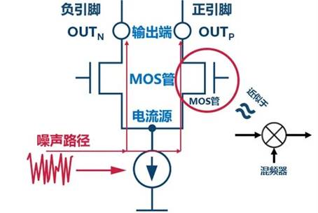 電流源的噪聲可以經(jīng)過MOS管到達(dá)輸出端,但這僅解釋了噪聲的耦合現(xiàn)象。