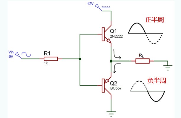 推挽放大器就是在電路中有兩個(gè)晶體管,其中一個(gè)晶體管在輸入信號(hào)的正半周期間將電流推向輸出端,而另一個(gè)晶體管在輸入信號(hào)的負(fù)半周期間將電流拉向輸出端。