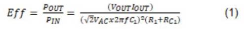 為提高該系統(tǒng)的效率,您需要優(yōu)化三個主要組件——浪涌電阻、穩(wěn)壓二極管和LDO的壓降。公式1所示為如何計算圖2所示的基本電容壓降解決方案的效率。