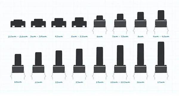 圖3:觸摸開(kāi)關(guān)的常見(jiàn)致動(dòng)器高度(圖片來(lái)源:CUI Devices)