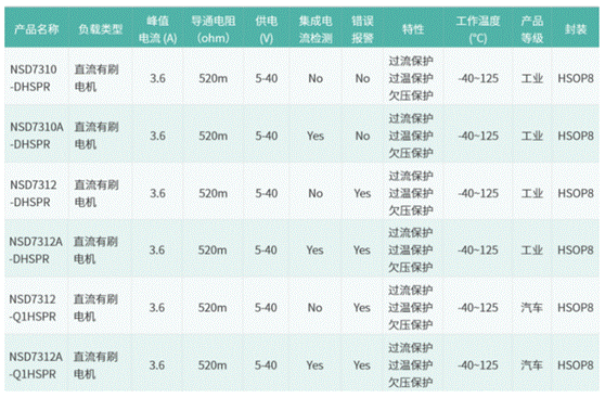 NSD731x直流有刷電機(jī)驅(qū)動(dòng)系列多款新品