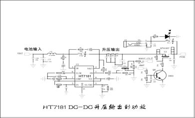(二)電源升壓采用HT7181,兩串鋰電升壓至15V,效率高達93%;HT7181具有2.7V至16V寬輸入電壓范圍,可為采用單節(jié)或兩節(jié)鋰電池,或12V鉛酸電池的應(yīng)用提供支持。該器件具備14A開關(guān)電流能力,并且能夠提供最高17.8V的輸出電壓;芯片采用ESOP-8封裝,外圍簡單。