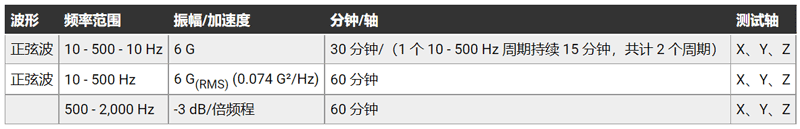 PUI Audio 為其觸感器件規(guī)定了三種振動(dòng)測試(參見表 1)。器件完成測試并“休息”四個(gè)小時(shí)后,必須滿足額定轉(zhuǎn)速(對(duì)于 ERM 器件)或加速度(對(duì)于 LRA 型號(hào))規(guī)格,以及電阻、額定電流和噪聲規(guī)格。