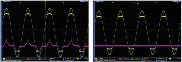 右側(cè)圖像添加了肖特基二極管(BAT54S)