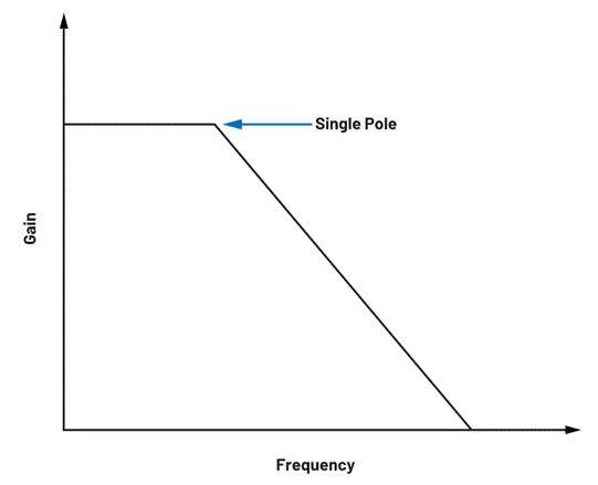 圖2. 通過電流模式控制實(shí)現(xiàn)的簡化控制環(huán)路補(bǔ)償,采用波特圖顯示,功率級中僅有一個單極點(diǎn)。
