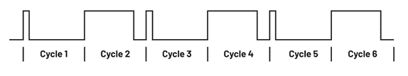 但是,除了提到的優(yōu)點(diǎn)以外,該穩(wěn)壓器也有缺點(diǎn)。在進(jìn)行開關(guān)轉(zhuǎn)換之后,電流模式穩(wěn)壓器無法立刻實(shí)施所需的電流測量,因?yàn)槿绻诖藭r進(jìn)行測量,測量結(jié)果中會包含大量噪聲。需要等待幾nS,等開關(guān)引起的噪聲減弱。這段時間被稱為消隱時間。這通常導(dǎo)致其最短導(dǎo)通時間略長于電壓模式穩(wěn)壓器的最短導(dǎo)通時間。電流模式穩(wěn)壓器的另一個缺點(diǎn)是其可能產(chǎn)生次諧波振蕩。如圖3所示。如果所需的占空比大于50%,電流模式穩(wěn)壓器可能交替執(zhí)行短脈沖和長脈沖。在許多應(yīng)用中,這被認(rèn)為是不穩(wěn)定的,需要加以避免。為了避免這種不穩(wěn)定性,可以向圖1所示的生成的電流斜坡添加一定的斜坡補(bǔ)償。這樣可以將關(guān)鍵占空比閾值調(diào)節(jié)到遠(yuǎn)高于50%,保證在更高占空比下,也不會發(fā)生次諧波振蕩。