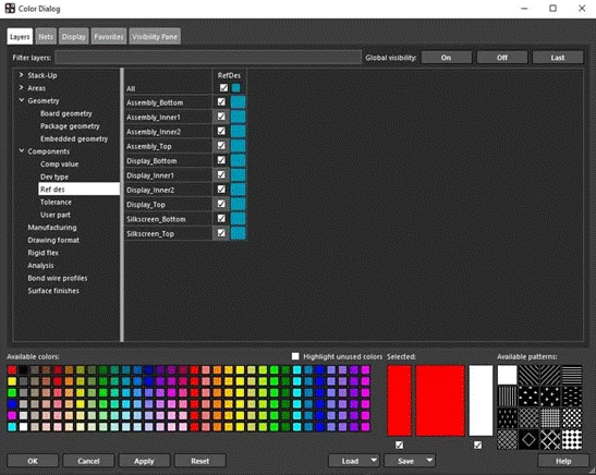 PCB CAD 系統(tǒng)用于設(shè)計顏色的參數(shù)設(shè)置菜單