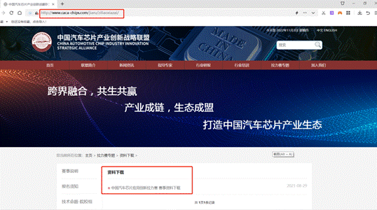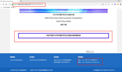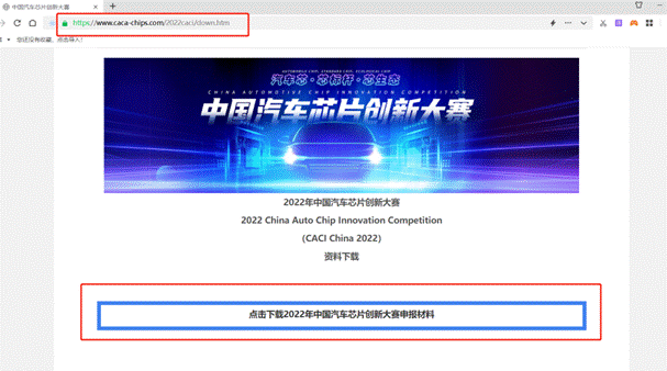 2022年11月1日-2022年11月14日;大賽線上和線下相結(jié)合,同步進(jìn)行申報材料征集;報名方式:登錄賽事官方網(wǎng)站中國汽車芯片產(chǎn)業(yè)創(chuàng)新戰(zhàn)略聯(lián)盟(見圖1)、國家新能源汽車技術(shù)創(chuàng)新中心賽事官方網(wǎng)站(見圖2)下載申報材料模板,按要求填寫后提交至指定郵箱。