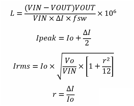 電感是降壓電路的核心器件,關(guān)系到整個(gè)電源的運(yùn)行。式中IRIPPLE表示電感的紋波電流,是電感電流的峰峰值。一般取電感平均電流的30%-40%。降壓電路的平局電感電流等于輸出電流,L算出來的單位是uH。根據(jù)電感的峰值電流選擇合適的電感和磁芯,峰值電流必須小于電感的額定電流,以保證磁芯不飽和。根據(jù)電感的有效值電流計(jì)算電感損耗以及發(fā)熱是否在可控范圍內(nèi)。