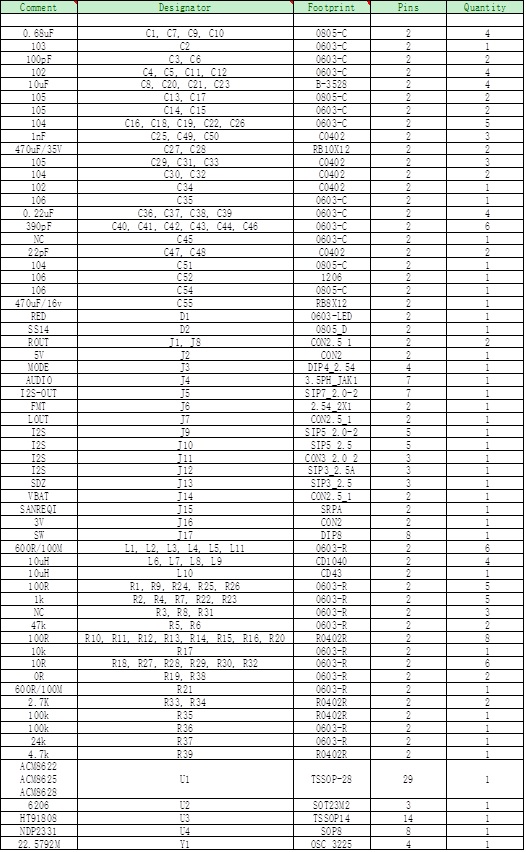 6.ACM8622/ACM8625M/P/ACM8628整體演示板物料清單