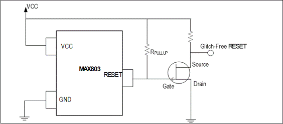 圖2、顯示了復(fù)位電壓如何與上拉電壓(VPULLUP)成比例上升,從而導(dǎo)致通常所說的復(fù)位毛刺。