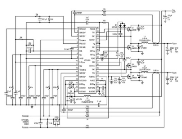 3.3V 直流母線在寬帶網(wǎng)絡(luò)系統(tǒng)中廣受歡迎,用于各種較低電壓,為 DSP、ASIC 和 FPGA 供電。這些較低的電壓范圍為1V至2.5V,通常需要高負載電流。為了保持高轉(zhuǎn)換效率,降壓轉(zhuǎn)換器的功率MOSFET導通損耗必須降至。問題在于,3.3V總線還頻繁使用亞邏輯電平MOSFET。這種MOSFET具有相對較高的RDS(ON),將轉(zhuǎn)換器的滿載效率限制在 85% 左右。更有效的解決方案是使用邏輯電平MOSFET,其R值非常低DS(ON)但需要一個 5V 電源。LTC1876 通過將一個 1.2MHz 升壓型穩(wěn)壓器 (其從一個 3.3V 輸入產(chǎn)生一個 5V 偏置電源)與兩個提供低電壓輸出的降壓型控制器相結(jié)合,允許使用邏輯電平 MOSFET。通過將所有三個穩(wěn)壓器集成到單個 IC 中,LTC1876 實現(xiàn)了小型且成本低廉的高效電源。
