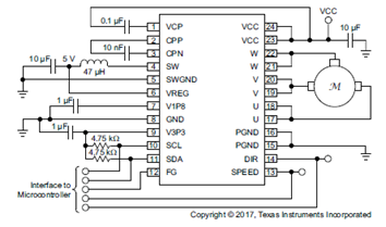圖2.DRV10987典型應(yīng)用電路圖