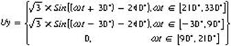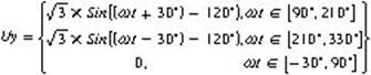 其中Ux、Uy、Uz為電機(jī)端線(xiàn)電壓,Ua、Ub、Uc為電機(jī)相電壓,可見(jiàn)相電壓相位差為120度。Ux、Uy、Uz與Ua、Ub、Uc的關(guān)系如下: