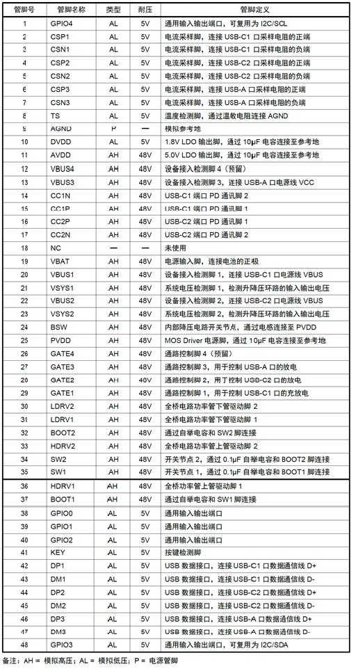 深圳市永阜康科技有限公司現(xiàn)在順勢推廣一顆支持PD3.1/QC3.0等主流快充協(xié)議、3-8節(jié)升降壓型140W鋰電充放電管理SOC-M12269。 該芯片是一款面向3-8串電芯大功率移動電源應用的專用SOC,集成了同步升降壓電壓變換器、電池充放電管理模塊、顯示模塊、電量計算模塊,提供最大140W輸入/輸出功率,支持 PD3.1、QC3.0、AFC、FCP、 SCP、BC1.2 DCP 等主流快充協(xié)議,并提供過壓/欠壓、過充/過放、過溫等完備的保護功能。封裝形式采用QFN-48(6.0×6.0mm,0.5mm pitch)。配合簡單的外圍電路,即可組成大功率單路多口(C+A+A)移動電源管理方案。