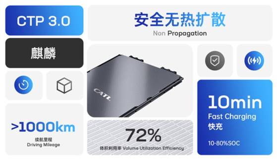 新型電池形態(tài)是一種籠統(tǒng)的表述,包括化學(xué)材料和物理結(jié)構(gòu)兩方面的創(chuàng)新。以寧德時(shí)代麒麟電池為例,化學(xué)材料創(chuàng)新包括先進(jìn)的高鎳811技術(shù)、摻硅補(bǔ)鋰技術(shù)等;物理結(jié)構(gòu)創(chuàng)新主要是指獨(dú)創(chuàng)的CTP高效成組技術(shù)。通過(guò)采用新的電池形態(tài),麒麟電池能量密度達(dá)到了255Wh/kg,體積利用率突破72%,10分鐘可充電達(dá)到80%,并讓車輛續(xù)航可以輕松突破1,000公里。