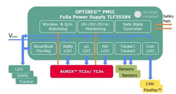對(duì)于PMIC(電源管理集成電路)大家都不陌生,幾乎所有用電設(shè)備都需要用到它,電動(dòng)汽車當(dāng)然也不例外。我們上面已經(jīng)提到,在快速充電場(chǎng)景下,電池系統(tǒng)的危險(xiǎn)系數(shù)會(huì)更高,此時(shí)BMS的安全作用便會(huì)更加凸顯。那么,下面我們?yōu)榇蠹彝扑]一款器件來(lái)幫助BMS提升安全性能,該器件在貿(mào)澤電子上的料號(hào)為TLF35584QVHS2XUMA1,來(lái)自制造商英飛凌。