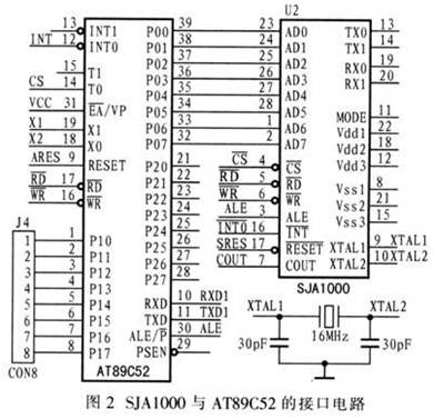 3.1 SJAl000與AT89C52的接口設(shè)計