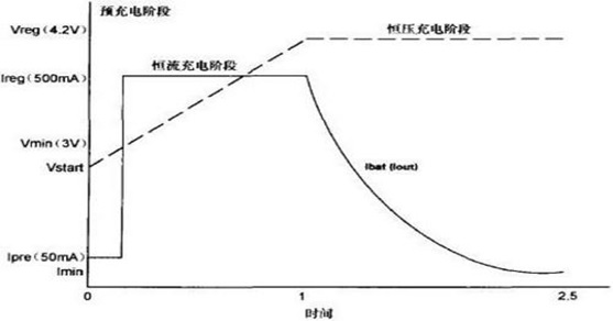 在電池電量用盡后,怎樣鋰電池進(jìn)行充電呢?市面上有很多充電管理IC可以協(xié)助我們完成整個(gè)充電過(guò)程。電池的充電過(guò)程,大致劃分為四個(gè)階段,即1涓流充電;2恒流充電;3恒壓充電;4停止充電。以最常見(jiàn)充電芯片4054為例,標(biāo)準(zhǔn)的鋰電池(滿電4.2V)充電過(guò)程如下圖所示: