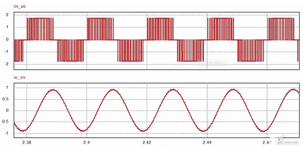 (2)弦波控制:使用的是SVPWM波,輸出的是3相正弦波電壓,電機(jī)相電流為正弦波電流?梢哉J(rèn)為在一個(gè)電氣周期內(nèi)進(jìn)行了多次的連續(xù)變化換向,無(wú)換相電流突變。顯然,正弦波控制相比方波控制,其轉(zhuǎn)矩波動(dòng)較小,電流諧波少,控制起來(lái)感覺比較“細(xì)膩”。