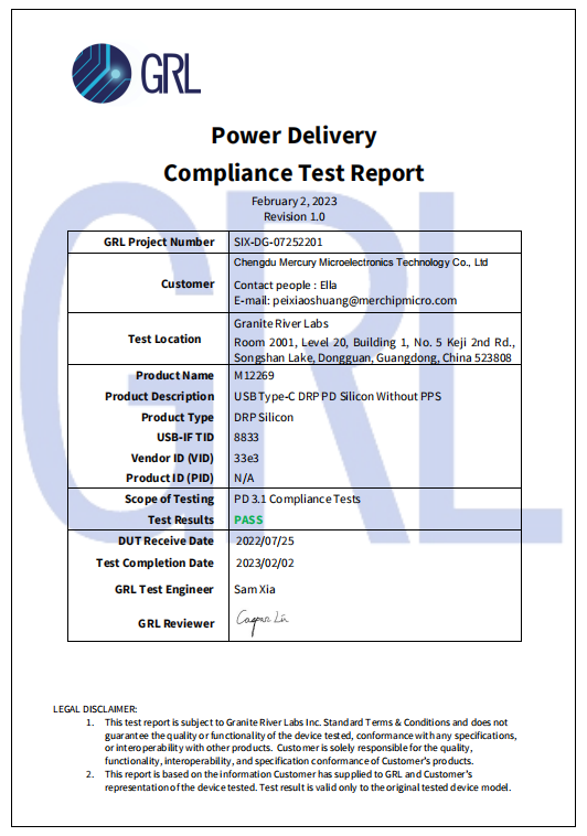 近日,水芯電子旗下芯片M12269正式通過了USB-IF協(xié)會官方PD3.1合規(guī)性監(jiān)測認證,并入選USB-IF集成商產(chǎn)品列表清單。至此,MERCHIP水芯電子M12269成為業(yè)界第一顆獲得PD3.1雙向認證的電源SOC芯片。在USB-IF官網(wǎng),可以查詢該芯片的認證TID號為8833。