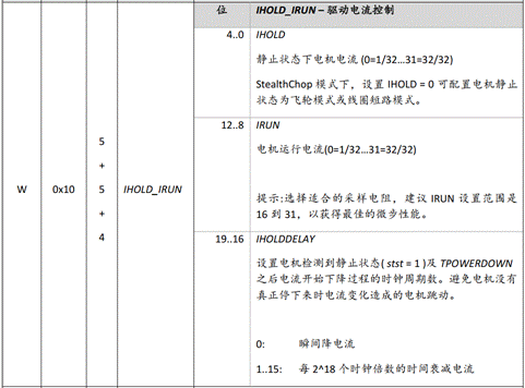 *IHOLD_IRUN 0X10:電流寄存器-設置合適的電流,設置電流大小直接影響電機的負載能力。設定電流改變后sgt值也需要調節(jié)。