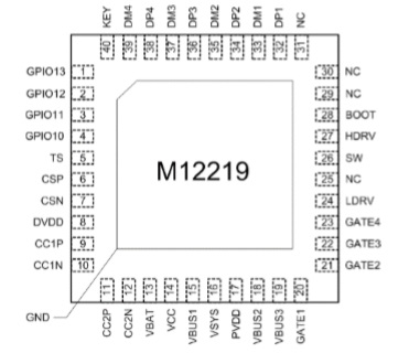M12249是一款面向單電芯30W移動電源開發(fā)的專用 SOC,集成了同步開關(guān)升壓變換器、電池充放電管理、電池電量計算,LED 顯示等功能模塊,支持PD3.1、QC3.0、AFC、FCP、SCP、BC1.2 DCP等主流快充協(xié)議,最大輸入/輸出功率30W,并提供過壓/欠壓、過充/過放、過溫、過流、短路保護等完備的保護功能。配合極簡的外圍電路,即可組成單串30W多口移動電源。 |