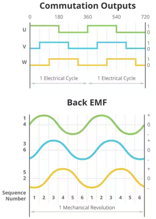 圖 2:換向輸出和電機(jī)相位(圖片來(lái)源:CUI Devices)