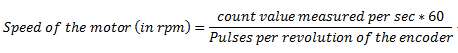 由于我們需要每秒跟蹤計(jì)數(shù)值,我們可以每 1 秒產(chǎn)生一個(gè)中斷。在中斷服務(wù)例程中,我們可以捕獲計(jì)數(shù)寄存器值,然后將其清零(即,用于測(cè)量下一秒的速度),并使用等式 1 可以確定電機(jī)的速度。