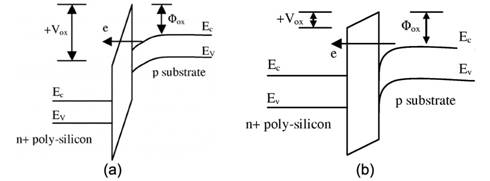 另一方面,當施加負柵極電壓時,來自 n+ 多晶硅柵極的電子隧道進入或穿過 SiO 2層,從而產生柵極電流,如圖 2(c) 所示。