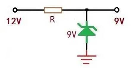 2、若負(fù)載電流很小100mA以內(nèi),可以使用限流電阻+9V穩(wěn)壓管的方式實(shí)現(xiàn),這種方法在實(shí)際應(yīng)用中也很常見,原理如下圖所示。