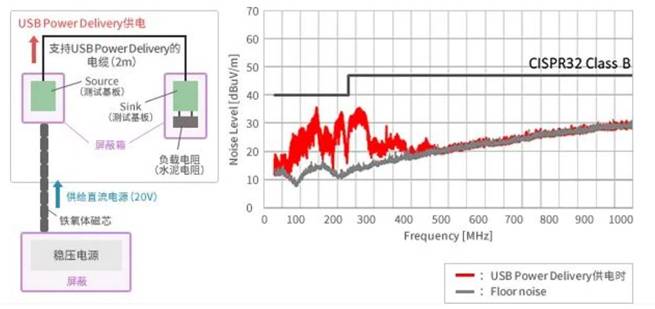 我們使用USB Power Delivery測試基板對供電時的輻射噪聲進(jìn)行了調(diào)查。