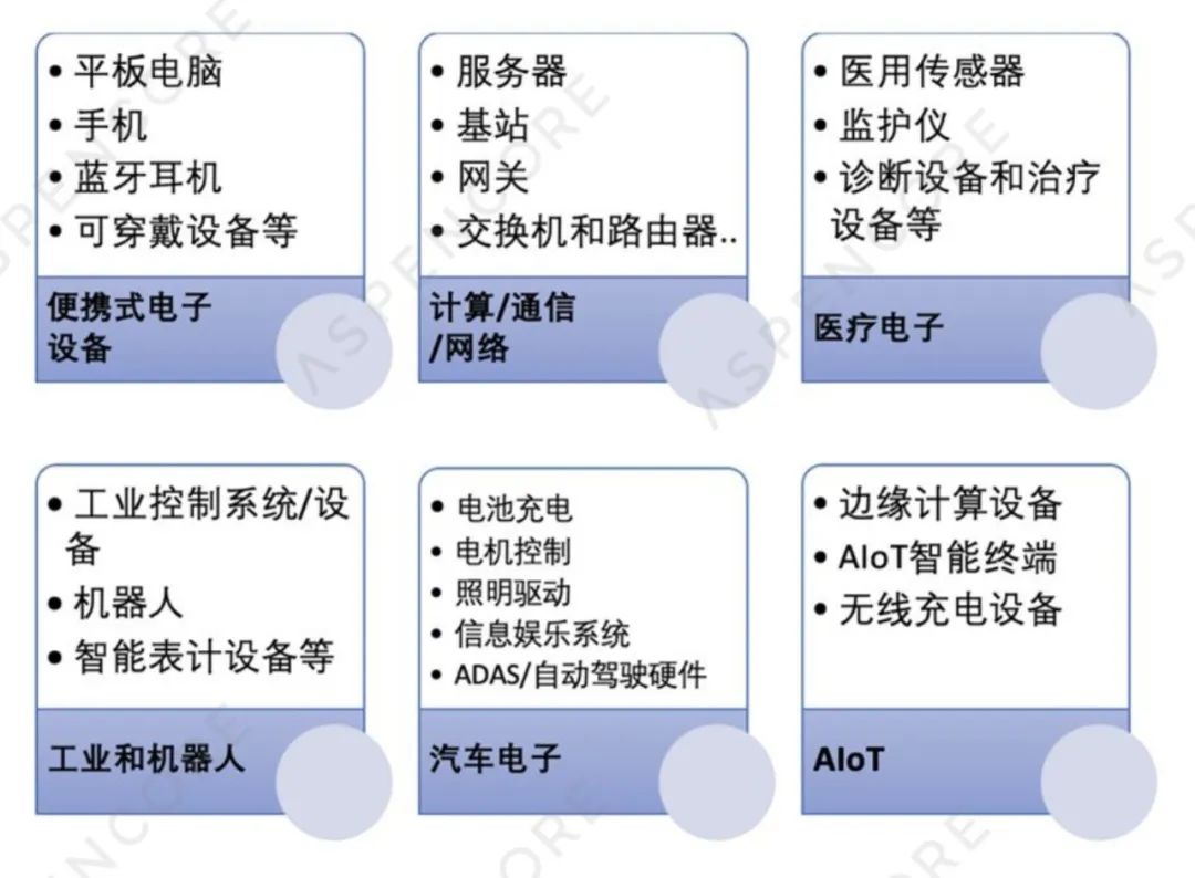 關(guān)鍵應(yīng)用:筆記本及平板電腦、智能可穿戴設(shè)備、電動工具、充電類產(chǎn)品、輕型電動車輛、智能家電、智能手機、無人機等。