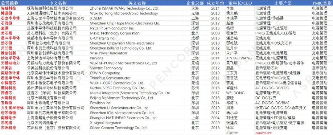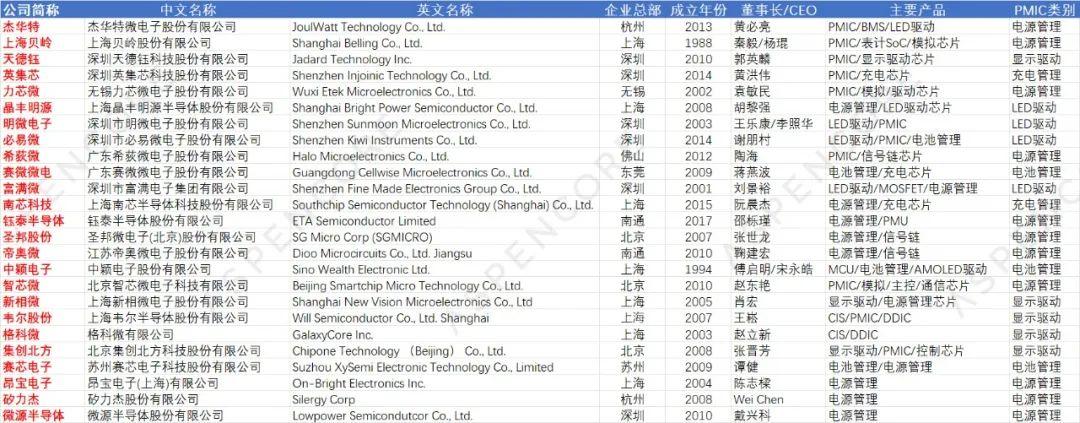 一、50家國產(chǎn)PMIC廠商基本信息匯總