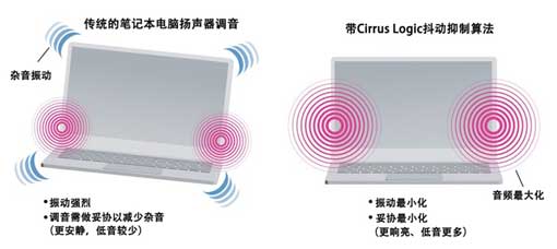 圖 5:Cirrus Logic 算法可減少超薄筆記本電腦的雜音并最大限度地減少振動,同時確保響亮、優(yōu)質(zhì)的音頻。