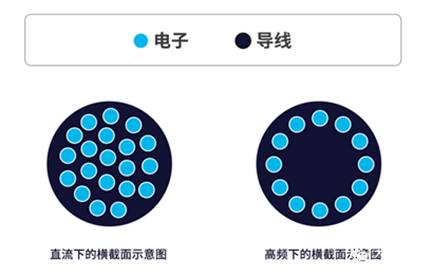 趨膚效應:交變電流通過導線時,電流在導線橫截面上的分布是不均勻的,導體表面的電流密度大于中心的密度,且交變電流的頻率越高,這種趨勢越明顯,該現(xiàn)象稱為趨膚效應(skin effiect),趨膚效應也稱集膚效應。