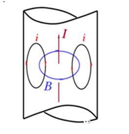 產生趨膚效應的本質原因是電流和磁場的相關關系,用下面的圖來表示: