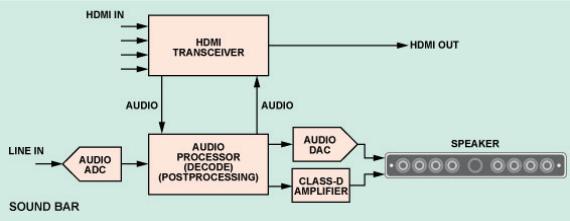 圖 3.  帶 HDMI 集線器的典型 SOUNDBAR 音箱框圖
