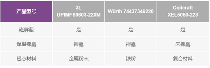 采用三個22 µH屏蔽電感進行測試,如表1所示。在不采用CM扼流圈的相同電路中評估EMI,每個電感都按照能提供最佳性能的方向安裝。比較結果如圖5所示。在本次研究中,Coilcraft XEL電感的FM頻段噪聲抑制性能最佳,與其他3L電感相比,將FM頻段EMI降低5.1 dB。